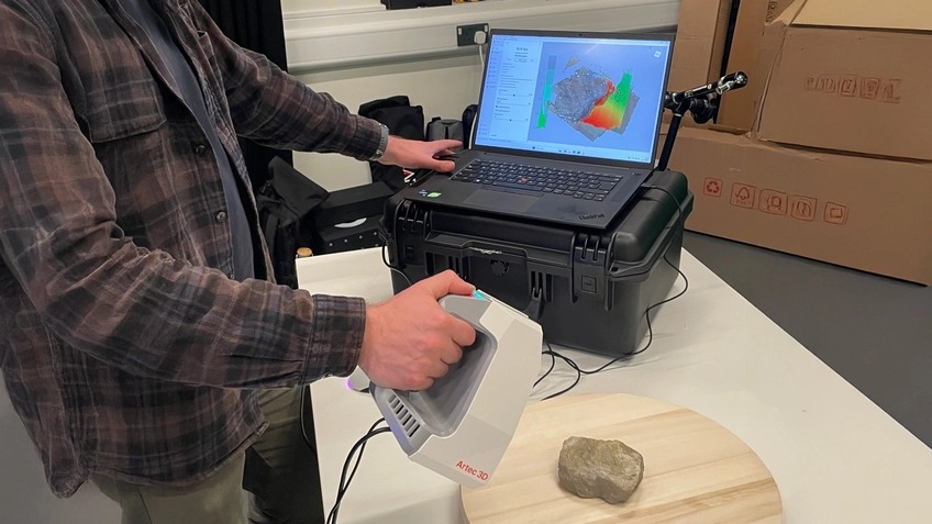 การสแกนตัวอย่างทางธรณีวิทยาแบบ 3 มิติด้วย Artec Spider II ภาพจาก Birkbeck มหาวิทยาลัยลอนดอน